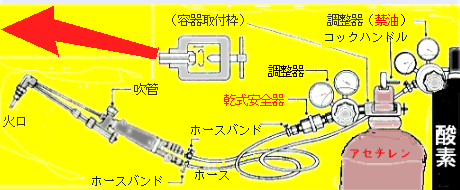 可燃性ガス及び酸素を使って作業するときは、高圧ガス保安法の規定を遵守するのはもちろん、労働安全衛生法に基づく「ガス溶接作業主任者免許を受けた者」または「ガス溶接技能講習修了者」が作業を行って下さい。 |